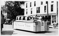 Black and white copy prints and negatives of a Bismarck parade, St. Mary's Catholic Church Bismarck priests, altar boys and parishioners, an accident on the Memorial Bridge, and the Mandan Bowling Team (1948). (11 items)
